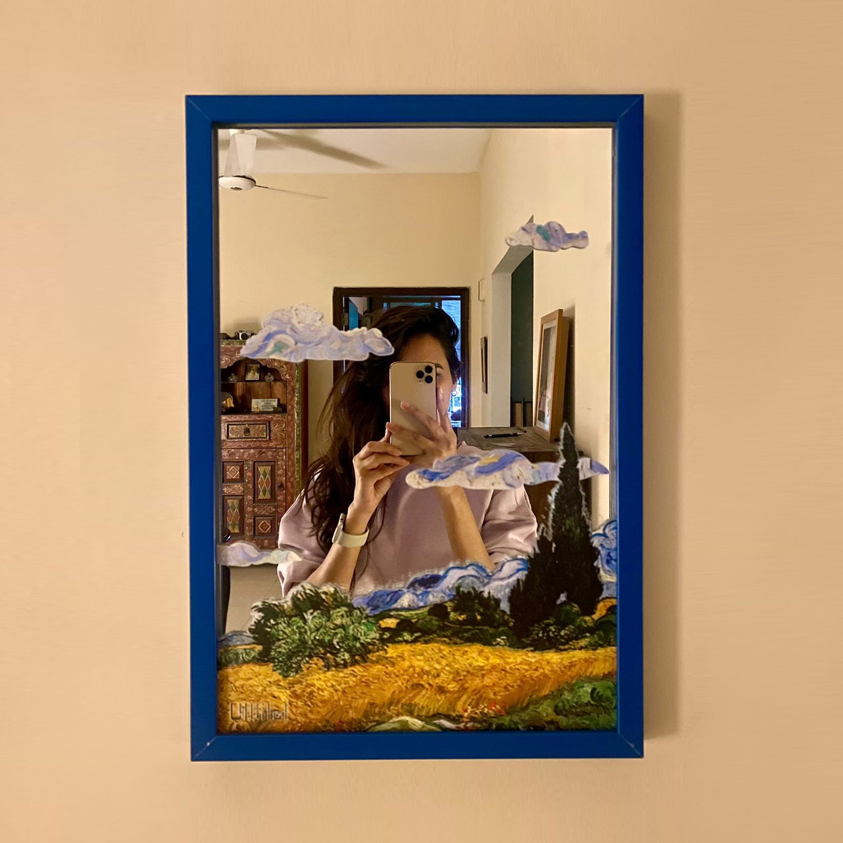 Our whimsical Wave mirror features Hokusai’s iconic artwork, measuring at 13×19 inches. It captures the energy of the ocean with shades of blue, made from high-quality materials for durability and a clear reflection. The sleek design complements any decor style, and it’s easy to install to add sophistication to any room. Use it as a statement piece or gift it to someone special who loves nature’s beauty. With The Wave whimsical mirror, appreciate the timeless artistry of Hokusai every day.
